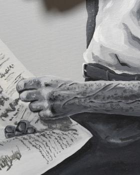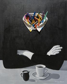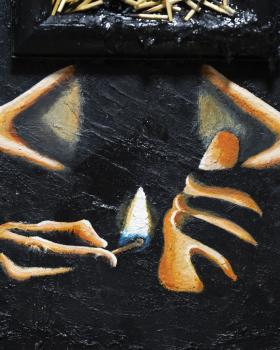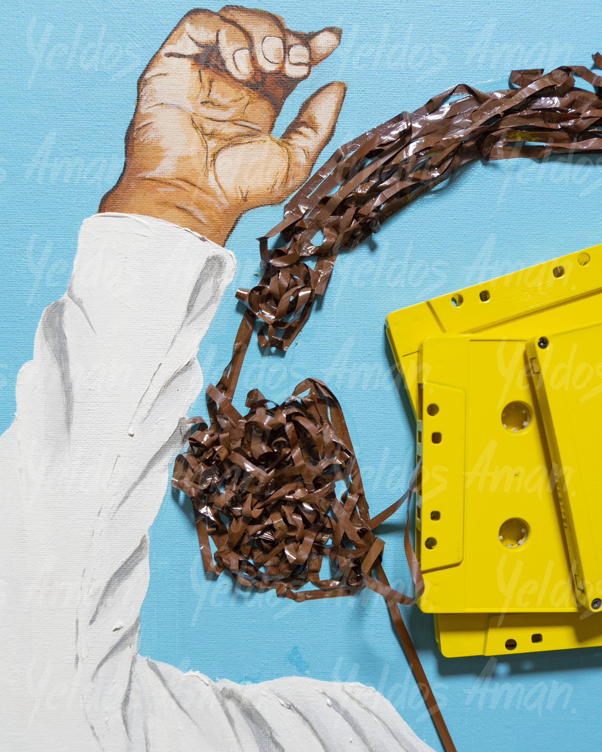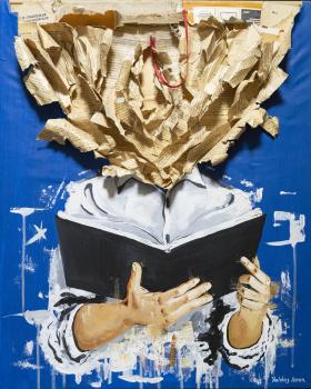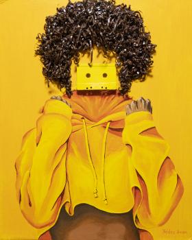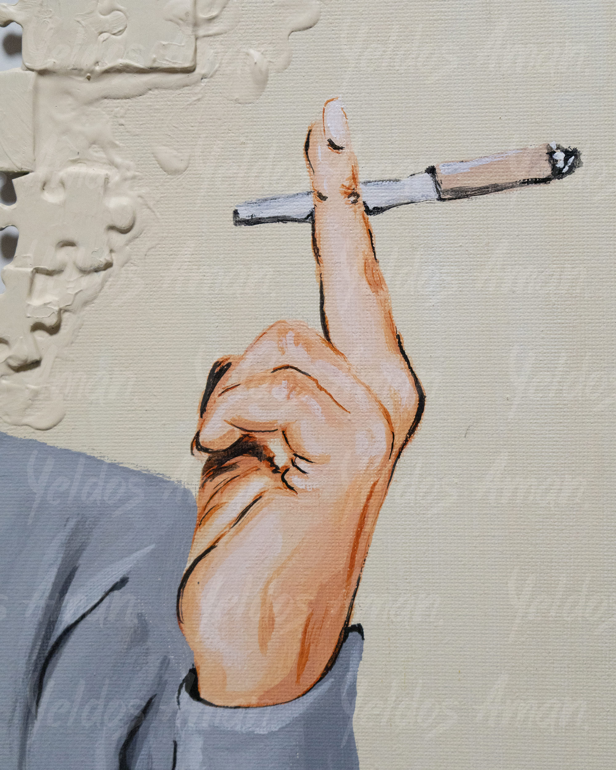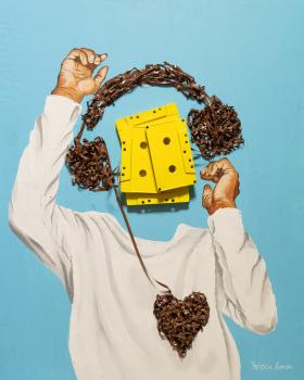 Работы из серии “Другие портреты. Вторая жизнь” — это комбинация изучения материалов через художественные практики и передача чувственных переживаний своих персонажей. За каждой работой стоит живой человек, где большая часть картин — это образы и наблюдения за разными людьми: увлеченными музыкой, писатели, художники и др. Есть и картины, которые были напрямую написаны со слов и чувств, которые переживает человек и где-то на основе собственных переживаний. В современном искусстве материал — это часть художественного высказывания. Каждый материал несет сам по себе смысл и послание для зрителя. Ключом к распознанию характеров героев работ служат предметы, которые используются. Подобная техника называется ассамбляж. Это