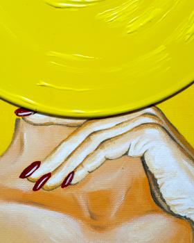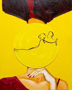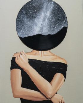 На выставке "За пределами холста", представлены художественные работы из серии "Другие портреты. Вторая жизнь". Эта серия работ писалась в период с 2021 по 2023 года, и включает в себя около 20 работ в стиле ассамбляж. Другие портреты - это комбинация изучения материалов через художественные практики и передача чувственных переживаний своих персонажей. За каждой работой стоит живой человек или образы и наблюдения за разными людьми: увлеченные музыкой, писатели, художники и др. Есть и картины, которые были напрямую написаны со слов и чувств, которые переживает человек.